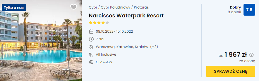 All inclusive w 4* hotelu z aquaparkiem na Cyprze od 1967 PLN. Wyloty z 6 miast