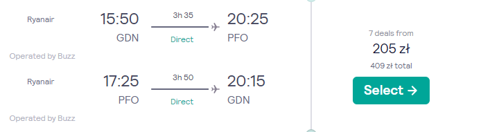 Na wyspę Afrodyty udacie się w dogodnym terminie z weekendem (sobota – wtorek) 19 – 22 listopada. Czeka was bezpośredni lot z Gdańska do Pafos, realizowany na pokładzie samolotu linii lotniczej Ryanair.