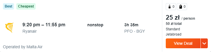 Podróżować będziecie na pokładach samolotów linii lotniczych Ryanair. Pamiętajcie też, że bez dodatkowych opłat możecie zabrać jedynie bagaż podręczny. Jeśli nie wiecie jak się spakować, przeczytajcie nasz poradnik. Z pewnością wam pomoże!