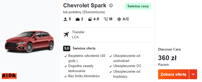 Samochód od 360 PLN/pobyt