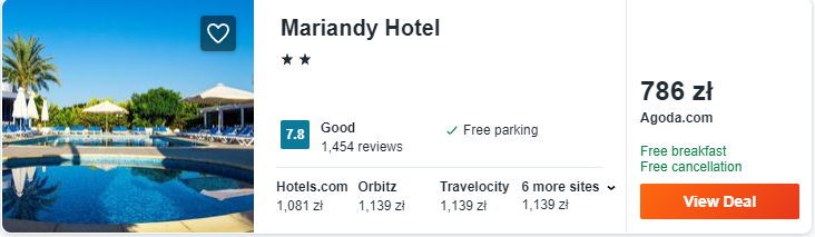 W Larnace zatrzymacie się w hotelu Mariandy z wliczonymi śniadaniami. Na miejscu do waszej dyspozycji będą komfortowo urządzone, klimatyzowane pokoje oraz wspaniałe widoki na pobliską zatokę.