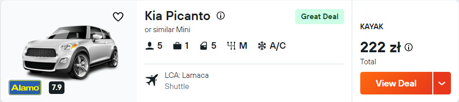 Chcesz się wybrać do Nikozji lub na przylądek Ajia Napa? Może masz ochotę zajrzeć do Pafos? W takim razie zaraz po przylocie na Cypr wypożycz samochód. Mając do swojej dyspozycji auto, łatwo dojedziesz do ww. miejsc i tam, dokąd sobie zaplanujesz.