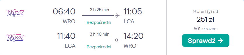 Na Cypr udacie się w terminie 9 – 12 grudnia (piątek-poniedziałek) z wrocławskiego portu lotniczego im. Mikołaja Kopernika. W obie strony polecicie na pokładach samolotów linii lotniczej Wizz Air z wliczonym małym bagażem podręcznym. Bilety w najniższej cenie dostępne są dla wszystkich, do ich zakupu nie są potrzebne żadne kluby zniżkowe.