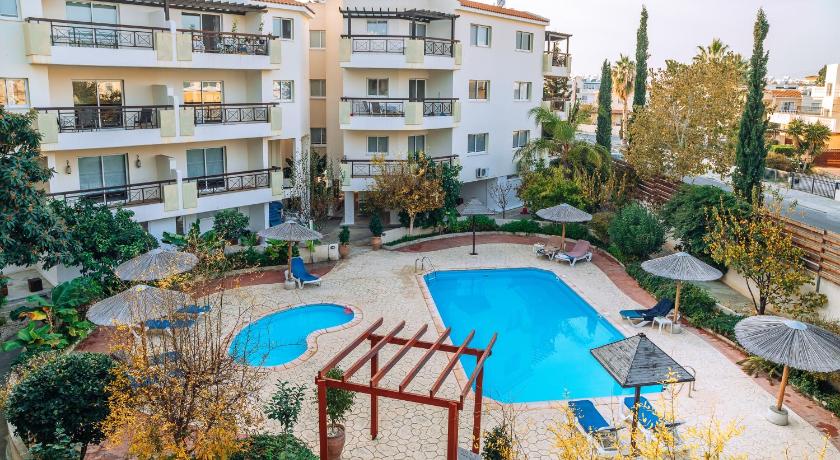 W Pafos zatrzymajcie się w apartamencie Artemis Cynthia Complex. Jak już wspomniałam wcześniej, obiekt wyróżnia doskonała lokalizacja: z łatwością dostaniecie się pieszo praktycznie wszędzie! Wasz apartament wyposażony będzie w klimatyzację, kuchnię oraz bezpłatny dostęp do Wi-Fi. Co najważniejsze: w obiekcie znajdują się dwa baseny, które przy tak gorącej temperaturze mogą okazać się zbawienne 😉.