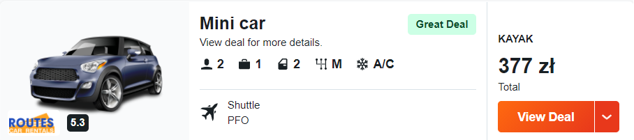 Chcecie zobaczyć więcej? Wypożyczcie samochód! To najwygodniejszy sposób, aby zobaczyć największe atrakcje wyspy, która ma bardzo dużo do zaoferowania: będziecie mogli wybrać się przykładowo do Ayia Napy, Nikozji czy Larnaki.