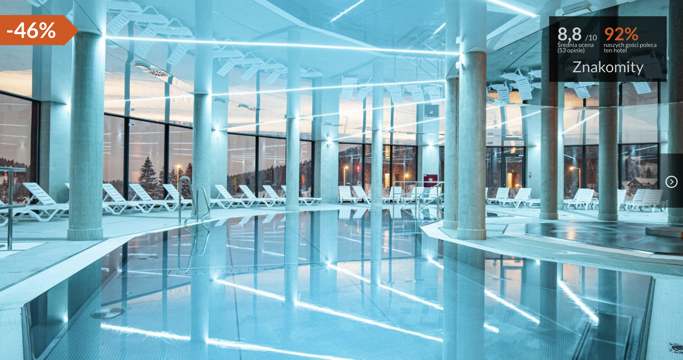 W cenie otrzymacie zakwaterowanie w komfortowo urządzonym apartamencie oraz śniadania i obiadokolacje w formie bufetu. Z pakietem Travelist czeka was również możliwość korzystania z nowoczesnego kompleksu wodnego, w skład którego wchodzi basen wewnętrzny oraz jacuzzi, a także dostęp do wypożyczalni, szkółek i sklepu rowerowego.