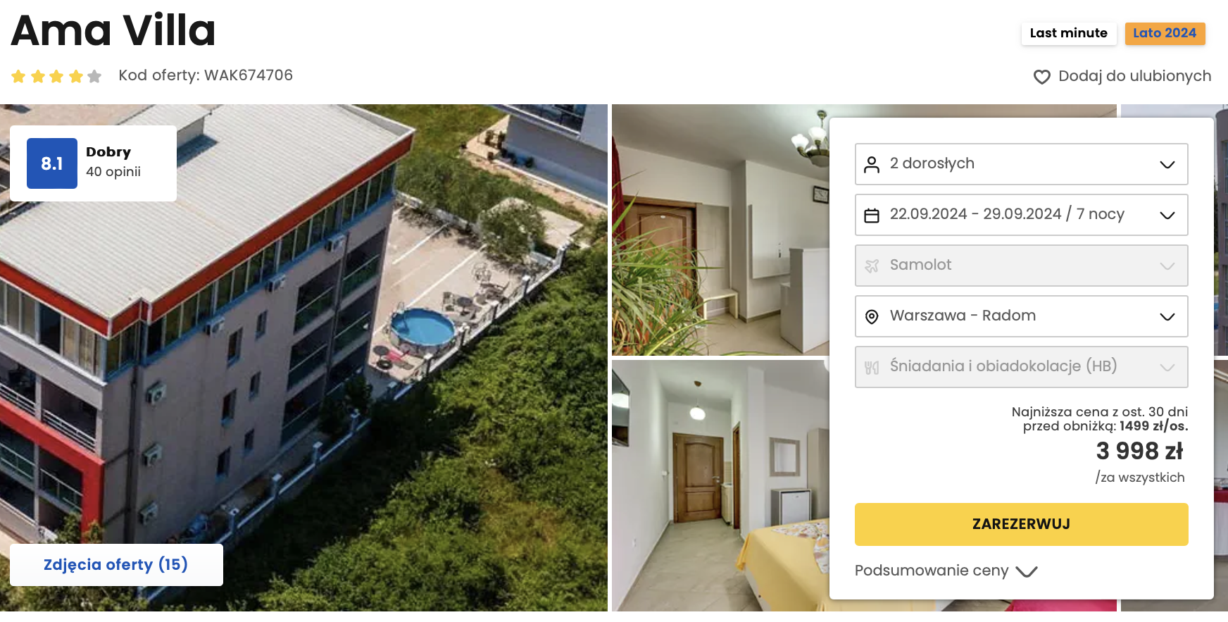 W cenę wliczone są loty z bagażem rejestrowanym, transfery na trasie lotnisko – hotel – lotnisko, śniadania i obiadokolacje oraz podstawowe ubezpieczenie.