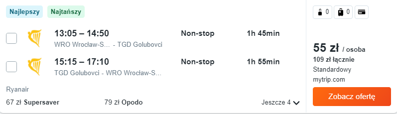 Na wycieczkę do Czarnogóry polecicie na zakończenie tegorocznego sezonu turystycznego, w terminie 23 – 30 października. Czeka was bezpośrednia podróż z Wrocławia, realizowana na pokładzie samolotu linii lotniczej Ryanair. Rozkładowy czas lotu zaplanowany został na 1:45h.