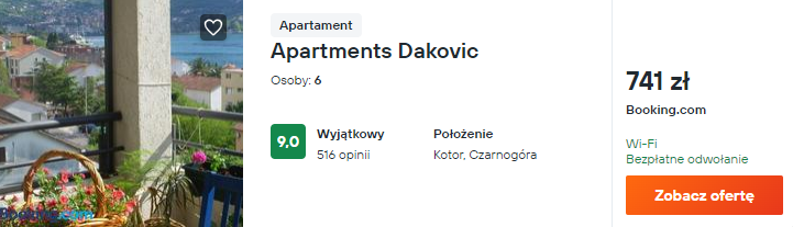 Za loty w obie strony oraz zakwaterowanie w Kotorze zapłacicie tylko 520 PLN za osobę, przy 2 podróżnych śpiących w jednym pokoju.