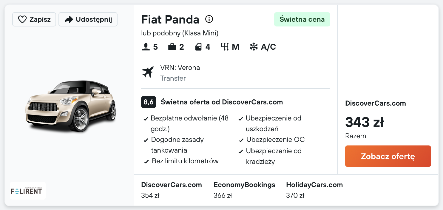 Jeśli chcesz zobaczyć okoliczne atrakcje lub wybrać się w góry, wypożycz samochód już na lotnisku w Weronie.