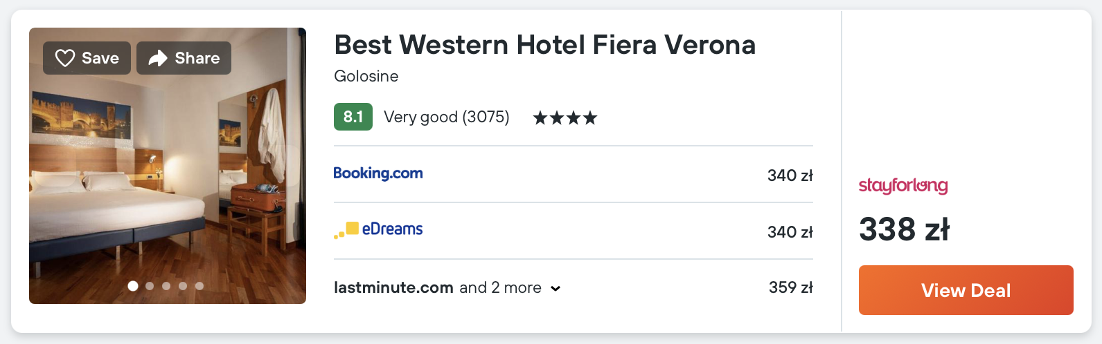 W Weronie polecam noclegi w 4* Best Western Hotel Fiera, który jest bardzo dobrze oceniany przez dotychczasowych gości.