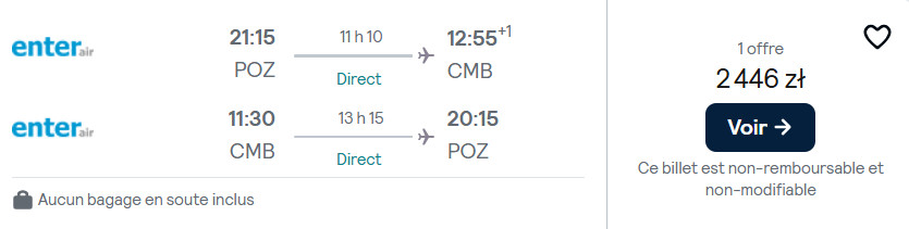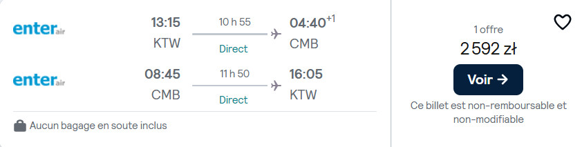 Do Dominikany (Puerto Plata) polecisz bezpośrednio z Warszawy w terminie 27 lutego-6 marca. W obie strony podróżować będziesz na pokładzie samolotu Boeing 787 Dreamliner należącego do PLL LOT. Natomiast do Sri Lanki (Kolombo) wybrać możesz się z Katowic oraz Poznania w terminie 6-17 marca. W obie strony polecisz czarterową linią Enter Air (z międzylądowaniem na tankowanie w ZEA).