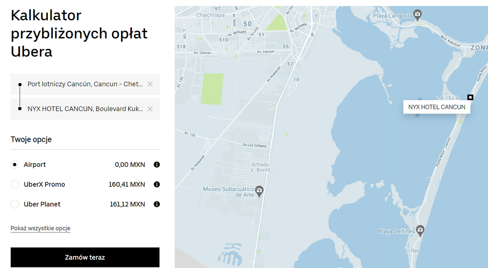 Do tanich lotów w klasie biznes proponuję wam także zakwaterowanie w 4* hotelu Nyx Cancun, który znajduje się tuż przy piaszczystej plaży. Z lotniska w Cancun pod sam hotel dojedziecie Uberem za 161 MXN (ok. 30 PLN).