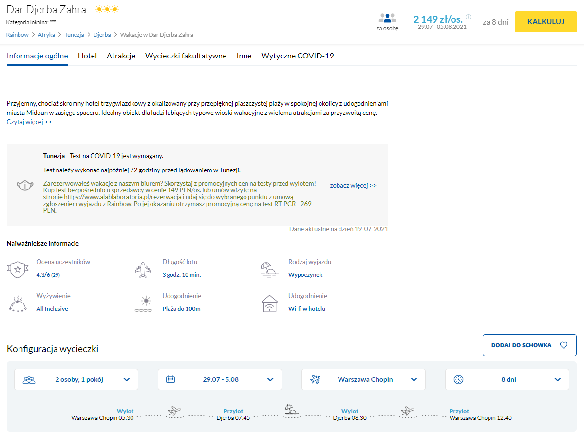 Łapcie wakacje z wylotem jeszcze w lipcu! Co powiecie na tunezyjską Djerbę? Wybierzcie się na urlop z biurem podróży Rainbow w formule all inclusive, która obejmuje wyżywienie i przeloty z bagażem rejestrowanym. Co zyskacie? Brak zmartwień i skupienie na błogim wypoczynku nad hotelowym basenem, czy na pobliskiej plaży 😉