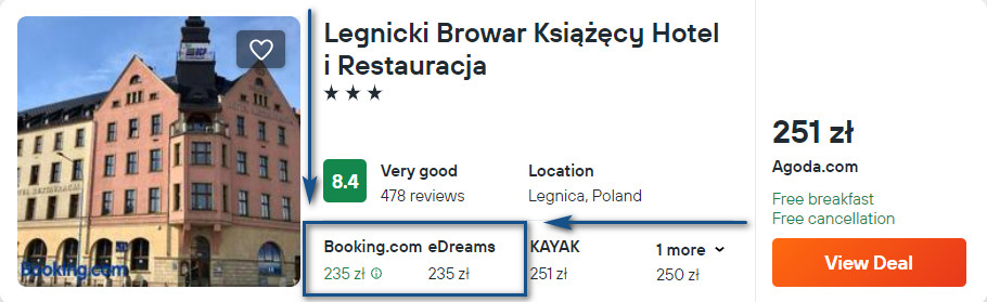 Niewiele więcej kosztować cię będzie pobyt ze śniadaniem w 3* hotelu Legnicki Browar Książęcy, który położony jest w sąsiedztwie starego miasta, w Legnicy. Tutejszy browar jest integralną częścią kompleksu (hotel i restauracja) mieszczącego się w ponad 100-letniej kamienicy.