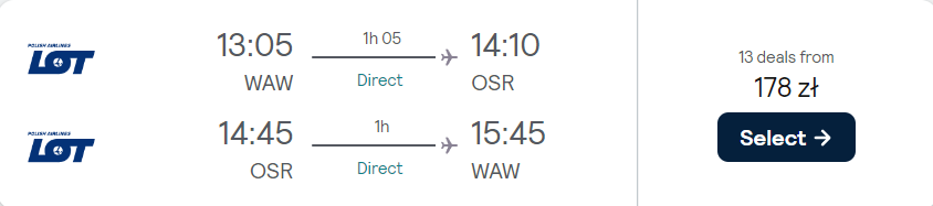 Twoja podróż do Czech odbędzie się w terminie 14-19 września z lotniska im. Fryderyka Chopina w Warszawie. Czeka cię bezpośrednie połączenie na pokładzie samolotów PLL LOT. W cenę biletu wliczono bagaż podręczny i przedmiot osobisty.
