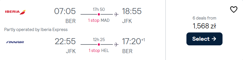 Do Nowego Jorku udasz się z portu lotniczego Berlin Brandenburg w terminie 4-9 kwietnia (czwartek-wtorek). W obie strony polecisz liniami American Airlines, Finnair oraz Iberia z wygodnymi przesiadkami w Madrycie oraz Helsinkach. Na wycieczkę bez dodatkowych kosztów udasz się z bagażem podręcznym o standardowych rozmiarach oraz przedmiotem osobistym.