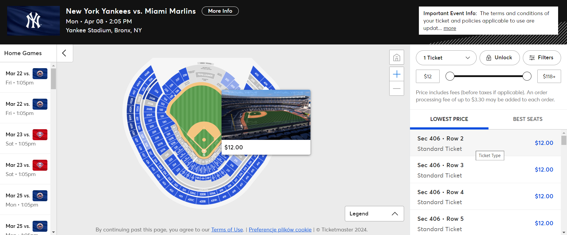 Natomiast w poniedziałek (8 kwietnia) wybierz się na stadion Yankee, gdzie o godzinie 14:05 odbędzie się mecz ligi MLN pomiędzy drużynami New York Yankees a Miami Marlins. Bilety (w cenie od 12 USD/ok. 47 PLN) na to spotkanie kupisz na stronie ticketmaster.com.