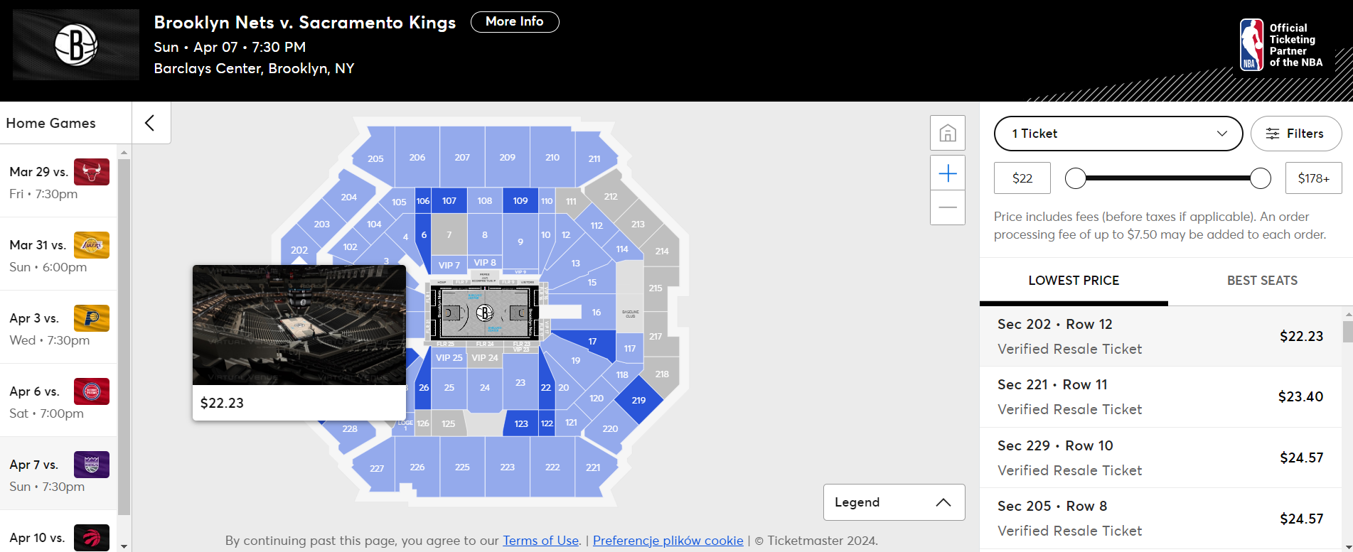 W niedzielę (7 kwietnia) udaj się do hali Barclays Center, gdzie o godzinie 19:30 zobaczysz mecz NBA pomiędzy drużynami Brooklyn Nets a Sacramento Kings. Bilety (w cenie od 22,23 USD/ok. 88 PLN) na to spotkanie kupisz na stronie ticketmaster.com.