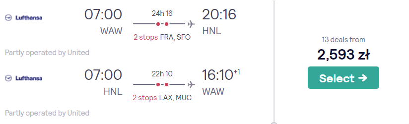 Kalendarz najtańszych lotów z Warszawy do Honolulu