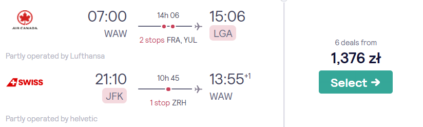 Kalendarz najtańszych lotów z Warszawy do Nowego Jorku
