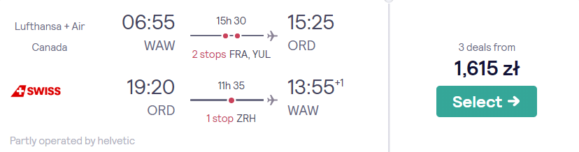 Kalendarz najtańszych lotów z Warszawy do Chicago