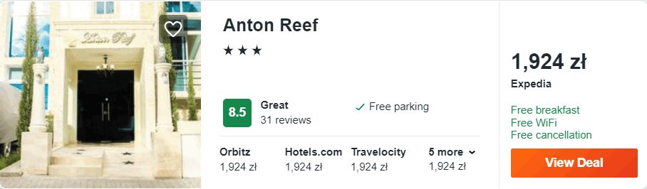 Zakwaterowanie: 3* hotel ze śniadaniami