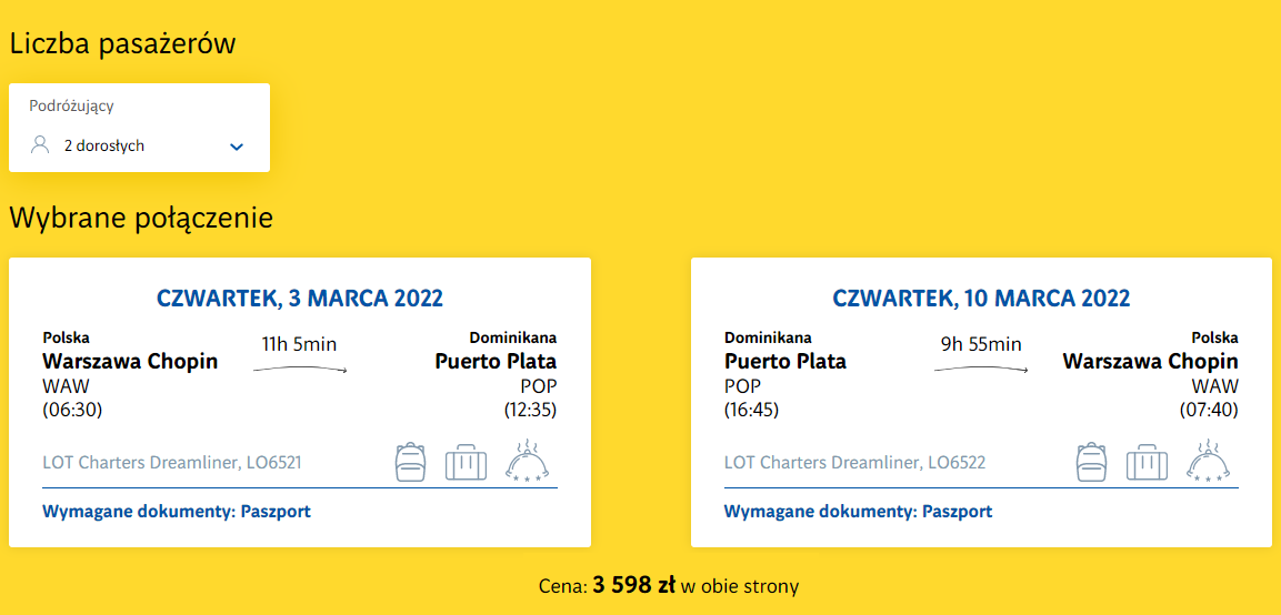 W podróż do Dominikany udacie się już za kilka dni, w terminie 3 – 10 marca. W obie strony polecicie bezpośrednio i wygodnie, na pokładzie wyczarterowanego samolotu Boeing 787 Dreamliner. W cenie biletu zabrać ze sobą będziecie mogli bagaż rejestrowany (nadawany do luku) oraz podręczny.