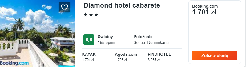 Wybrałem dla was noclegi w 3* Diamond hotel cabarete. Lokalizacja niedaleko plaży, zielony ogród oraz odkryty basen pozwolą wam od razu poczuć urlopową atmosferę.