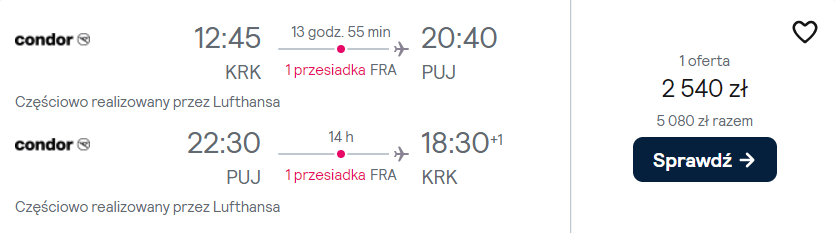 Do Dominikany wybrać się możesz z lotniska Kraków-Balice oraz z warszawskiego portu lotniczego im. Fryderyka Chopina na przełomie maja i czerwca. W obie strony polecisz liniami PLL LOT/Lufthansa oraz Condor z przesiadkami we Frankfurcie. W cenę wliczony jest bagaż podręczny oraz rejestrowany.