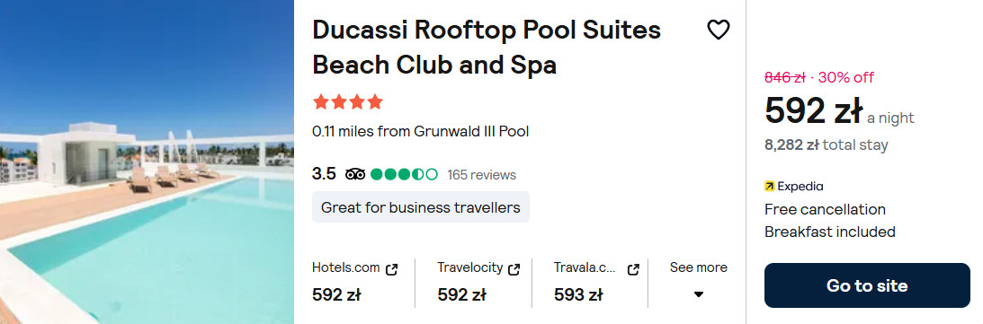 Niewiele więcej kosztować cię będzie zakwaterowanie (ze śniadaniami) w 4* hotelu Ducassi Rooftop Pool Suites Beach Club and Spa, z odkrytym basenem na dachu! Znajduje się tuż przy piaszczystej plaży. W cenie zapewniony będziesz miał dostęp do sieci WiFi oraz miejsca parkingowego.