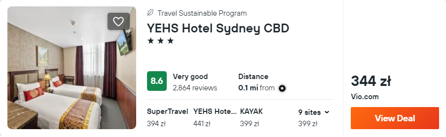 W Sydney wybrałem dla ciebie pobyt w 3* hotelu YEHS. Obiekt będzie dobrą bazą wypadową do zwiedzania miasta.
