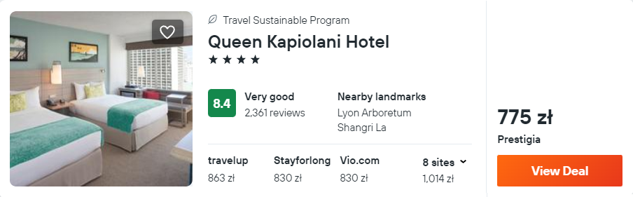 Na Hawajach proponuję ci zakwaterowanie w 4* hotelu Queen Kapiolani. Obiekt usytuowany jest niedaleko plaży Waikiki.