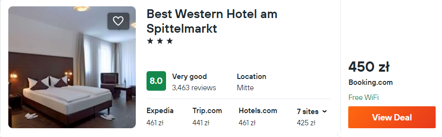 Natomiast w Berlinie wybrałem dla ciebie 3* hotel Best Western, który mieści się niedaleko najważniejszych atrakcji miasta.