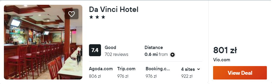 W Nowym Jorku zatrzymaj się na Manhattanie w hotelu Da Vinci. Dotychczasowi goście pozytywnie oceniają to miejsce.