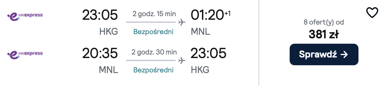 W podróż wybierzesz się w terminie 20 (21) stycznia-4 lutego 2026 r. Pierwszym jej etapem będzie lot z Warszawy do Hongkongu w przesiadką w Amsterdamie linią KLM. 24 stycznia polecisz do stolicy Filipin. Po 10 dniach wrócisz do Hongkongu i dzień później do Polski. W ceny biletów w obu liniach lotniczych wliczony został bagaż podręczny oraz przedmiot osobisty.