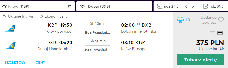 Całą podróż odbędziecie na pokładach samolotów linii Ukraine International Airlines z bagażem podręcznym i przesiadkami w Kijowie. Czas pomiędzy przylotem do stolicy Ukrainy, a odlotem do Zjednoczonych Emiratów Arabskich możecie wykorzystać na zwiedzanie miasta. Gwarantuję wam, że w tym czasie uda się wam zobaczyć parę głównych atrakcji Kijowa. Informacje na temat dojazd z lotniska do centrum Kijowa znajdziecie tutaj.