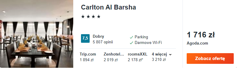 Wybrałem dla was noclegi w 4* hotelu Carlton Al Barsha. Dogodna lokalizacja, świetna obsługa oraz odkryty basen na tarasie – oto, co wyróżnia obiekt na tle innych hotelu.