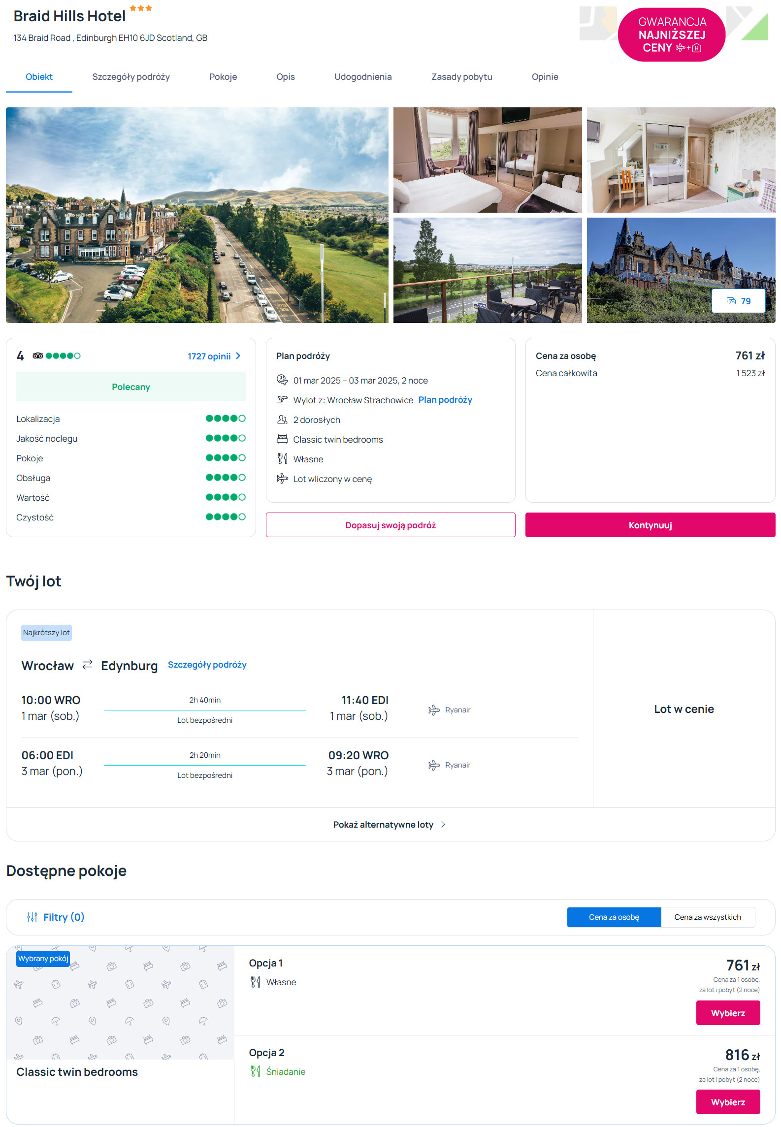 Do Szkocji wylecisz w sobotę (1 marca) z Wrocławia o godzinie 10:00. W drogę powrotną na Dolny Śląsk wyruszysz w poniedziałek (3 marca), a wylot zaplanowano na godzinę 6:00. W obie strony polecisz bezpośrednio linią Ryanair z bagażem podręcznym.