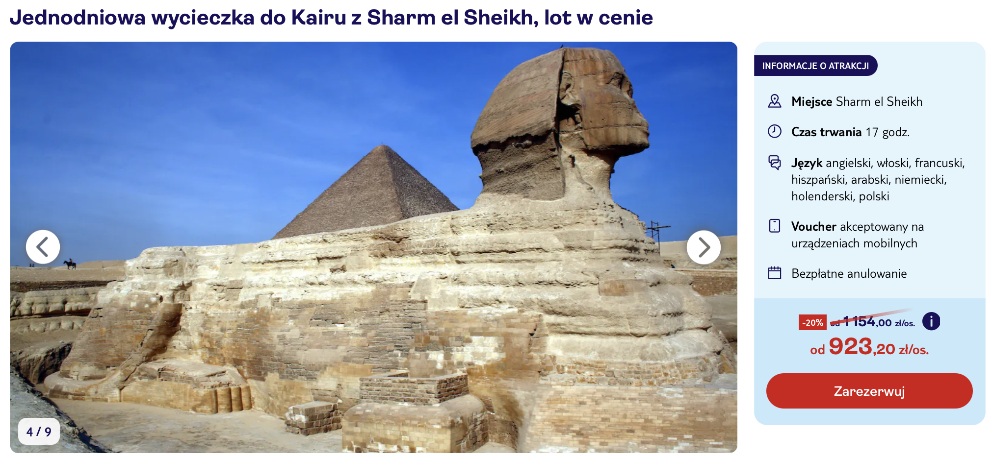 Atrakcje 923 PLN/osoba