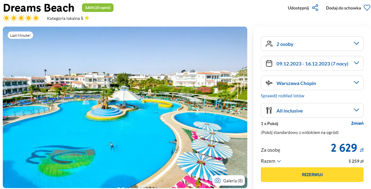 W cenie zapewnione są przeloty (z bagażem rejestrowanym), transfery na trasie lotnisko – hotel – lotnisko, opieka rezydenta, ubezpieczenie oraz wyżywienie all inclusive.