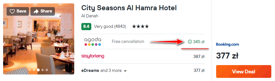 W stolicy Zjednoczonych Emiratów Arabskich proponuję ci noclegi w 4* hotelu City Seasons Al Hamra, który znajduje się w centrum dzielnicy biznesowej. Każdy pokój wyposażony jest w klimatyzację, telewizor LCD oraz lodówkę.