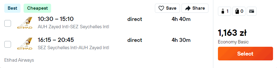W pierwszym przypadku polecisz bezpośrednio linią Wizz Air. Natomiast na pozostałych trasach podróżować będziesz linią Etihad Airways (również bezpośrednio). Do zakupu biletów nie potrzebujesz żadnych klubów zniżkowych. Bez dodatkowych kosztów na wycieczkę udasz się z bagażem podręcznym.