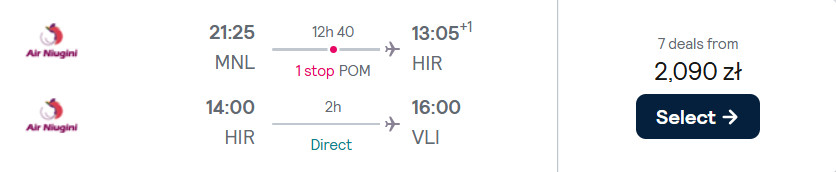 Wycieczkę rozpoczniesz bezpośrednim lotem (12 maja) z Krakowa do Abu Zabi. Następnie czekać cię będzie podróż (14 maja) z Dubaju na Filipiny (Manila). Ze stolicy Filipin polecisz (16 maja) na Wyspy Salomona, z których następnie wybierzesz się (24 maja) na egzotyczne Vanuatu.