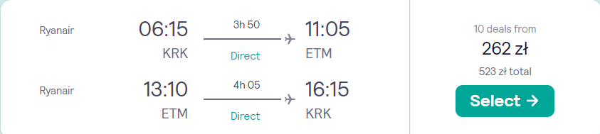 Do Ejlatu udasz się w dniach 12-15 stycznia (czwartek-niedziela). Czeka cię bezpośredni lot z Krakowa, realizowany na pokładzie samolotu linii Ryanair. W cenę wliczony jest wyłącznie mały bagaż podręczny. Przeczytaj nasze wskazówki, jak się spakować, a nie powinno to stanowić problemu.