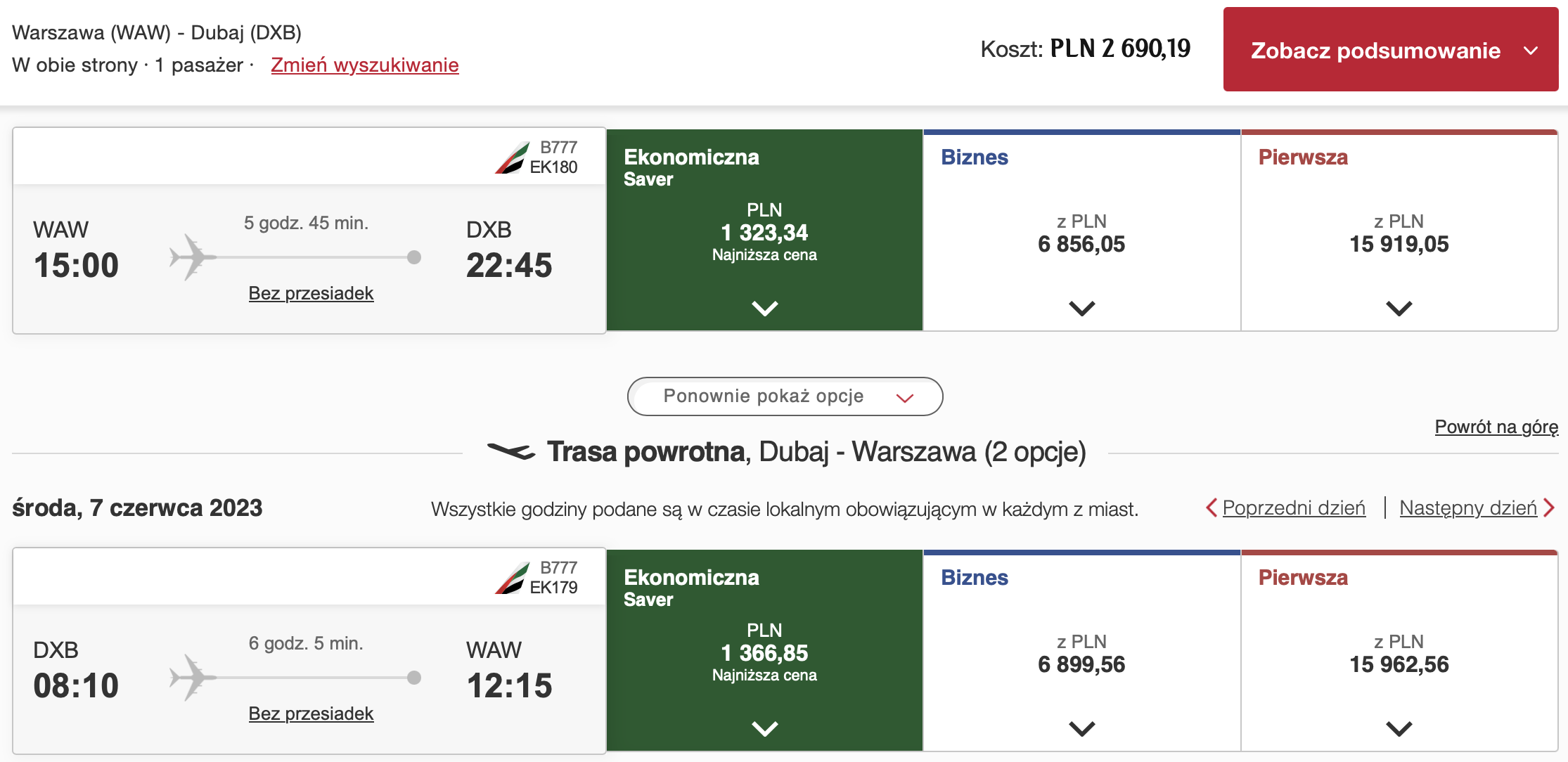 Warszawa – Dubaj – Warszawa >>