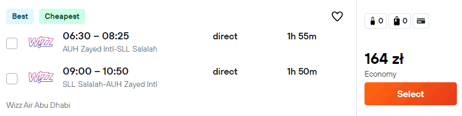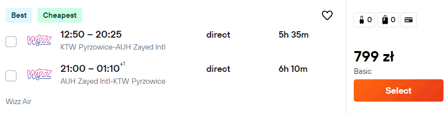 Wszystkie loty są bezpośrednie i odbędziesz je linią Wizz Air z bagażem podręcznym. Bilety w najniższej cenie dostępne są dla wszystkich chętnych. Do ich zakupu nie potrzebujesz żadnych klubów zniżkowych.