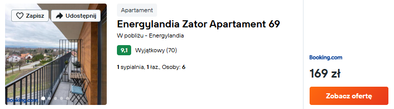 Szukasz propozycji, która nie zrujnuje rodzinnego budżetu? Zatrzymaj się w bardzo dobrze ocenianym Energylandia Zator Apartament 69. Na miejscu znajdziesz wszystkie udogodnienia, które pozwolą na komfortowe spędzenie kilku dni.