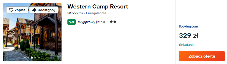 Lubisz „niezwykłe noclegi”? Western Camp Resort to propozycja w stylu Dzikiego Zachodu, która z pewnością przypadnie do gustu najmłodszym gościom. W cenę pobytu wliczono codzienne śniadania.