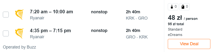 Wszystkie dostępne daty znajdziecie wypisane poniżej. W obie strony polecicie bezpośrednio na pokładach samolotów linii Ryanair z wliczonym małym bagażem podręcznym, a za bilety zapłacicie tylko 48 PLN/osoba!